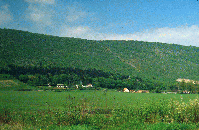 A falu látképe hátterében az